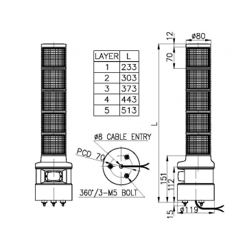帶高音量喇叭的 Ø80 燈泡型 多層式警示燈