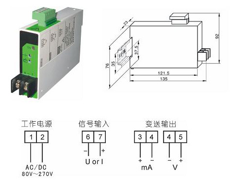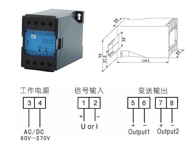 電測量變送器是一種將被測量參數(如電流、電壓、功率、頻率因數等信號)轉換或隔離的直流電流、直流電壓式數字信號的裝置產品符合國際GB/T13850-1998