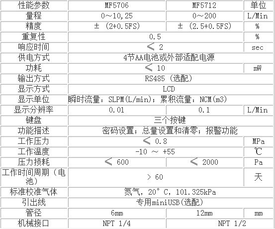 MF5706管徑:6mm; 流量:0-10L/min、0-25L/min;