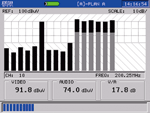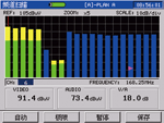 頻道掃描 可以快速測試頻道的電平平坦度,查看相鄰頻道、意頻道間電平差值是否滿足標測試要求。通過移動頻標清楚的查看意頻道的視頻、音頻值、視音比、平均率值。可以同屏觀察多150個頻道。 |