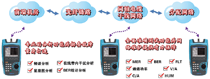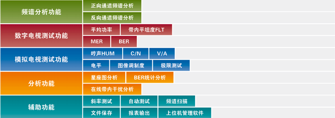 ﹡5M-1000MHz 頻譜分析帶寬滿足基于何術的雙向網絡的測試需求,通過觀察頻帶的頻譜狀況把握網絡質量情況。