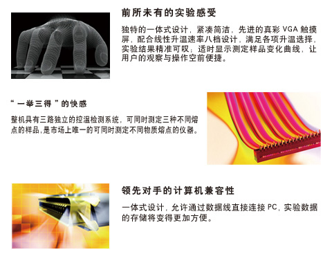 三路獨(dú)立的控溫檢測系統(tǒng),可同時(shí)測定三種不同熔點(diǎn)的樣品