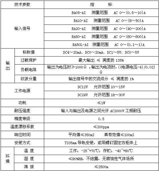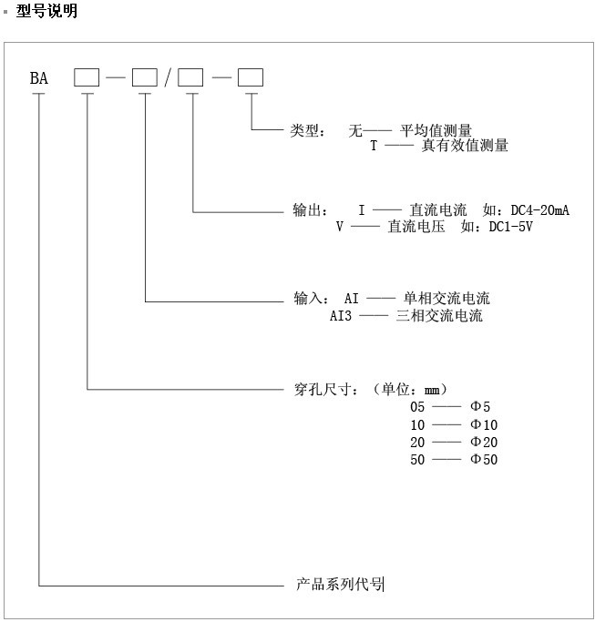 1 概述 BA系列產品主要用于工廠自動化領域。產品采用、低功能耗微型測量互感器及電子電路,采集電網中交流電流信