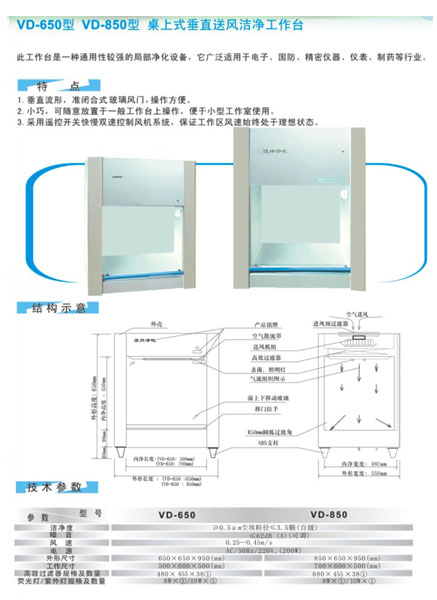 VD-850 VD-650型桌上式垂直送風潔凈工作臺