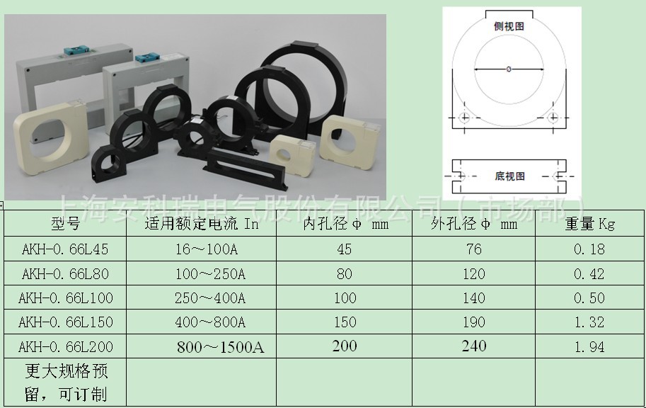 注:若需要母排方孔型,或開口式的互感器,請另與廠家聯系。
