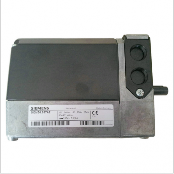 外殼耐壓型伺服馬達SQM56.687A2,電動執行機構,即伺服電機,用于中大型燃油或燃氣燃燒器的風門擋板或空/燃比控制。凸輪控制,齒輪離合。內部及外部位置指示,設置有便于調整的終端及輔助開關。主要用于配合燃燒器控制器的電子式空氣燃氣比例控制。該執行器專為LMV5..設計制造。