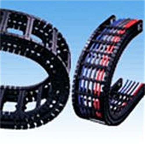 TSUBAKI拖鏈適合于使用在往復(fù)運(yùn)動(dòng)的場(chǎng)合,能夠?qū)?nèi)置的電纜、油管、氣管、水管等起到牽引和保護(hù)作用。TSUBAKI拖鏈每節(jié)都能打開(kāi),便于安裝和維修,運(yùn)動(dòng)時(shí)噪音低、耐磨、可高速運(yùn)動(dòng)。 TSUBAKI拖鏈已被廣泛應(yīng)用于數(shù)控機(jī)床、電子設(shè)備、石材機(jī)械、玻璃機(jī)械、門(mén)窗機(jī)械、注塑機(jī)、機(jī)械手、起重運(yùn)輸設(shè)備、自動(dòng)化倉(cāng)庫(kù)等。TSUBAKI拖鏈外形似坦克鏈,由眾多單元鏈節(jié)組成,鏈節(jié)之間轉(zhuǎn)動(dòng)自如。相同系列的拖鏈內(nèi)高、外高、節(jié)距相同,拖鏈內(nèi)高、彎曲半徑R可有不同的選擇。TSUBAKI單元鏈節(jié)由左右鏈板和上下蓋板組成,拖鏈每節(jié)都能打開(kāi),裝拆方便,不必穿線,打開(kāi)蓋板后即可把電纜、油管、氣管等放入拖鏈內(nèi)。另可提供分隔片,將鏈內(nèi)空間按需要分隔開(kāi)。TSUBAKI采用增強(qiáng)尼龍材料,具有抗拉負(fù)荷、高彈性、耐磨性、阻燃并有一定的耐酸、堿能力。高低溫時(shí)性能穩(wěn)定,可以使用在室外。速度可達(dá)5米/秒,在正常架空使用情況下,可達(dá)千萬(wàn)往復(fù)運(yùn)動(dòng)次數(shù)。