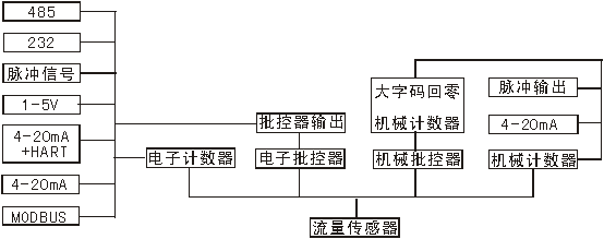 輸出信號:脈沖信號、4~20mA、1-5V、4~20mA +HART協議、MODBUS