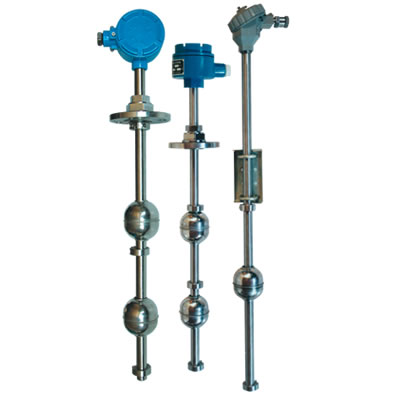 連桿浮球液位開關是把中空且內部裝有環形磁鐵的浮球,按要求貫穿限定在密閉的非導磁的導桿上,當浮球受液體浮力作用而隨液位上升或下降時,在磁力的作用下導桿內相應位置處預先裝置的干簧管即輸出開(通)或關(斷)的信號,指示被測液體的實際位置。