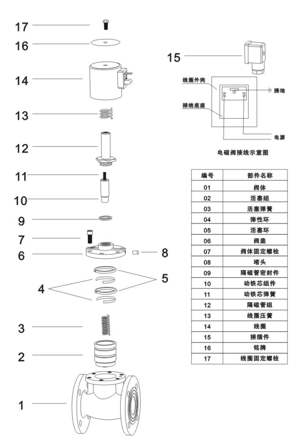 安裝方式:介質流向與閥上箭頭保持一致,線圈垂直向上,工作介質應清潔