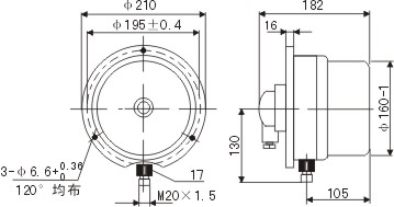 儀表由隔爆外殼、測(cè)量系統(tǒng)、電接點(diǎn)組、調(diào)節(jié)裝置和出線盒等組成。