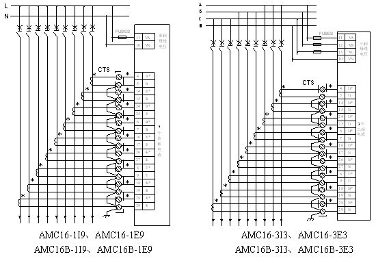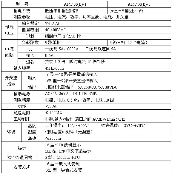 AMC16系列多回路監控裝置主要應用于多個配出回路的電參數的監測,它將回路中的母線電壓、多個配出回路的電流、功率、電能集中測量和顯示,并可對各個回路的開關狀態集中監測和顯示,以上各參量還可通訊輸出,實現了對監控要求較簡單的配電出線回路的集中測量和監視。一個AMC16多回路監控裝置就能實現對多個回路的電參量的測量和開關狀態的監測,大大方便了系統的接線、安裝、調試;節約了用戶的投資,降低了系統成本。