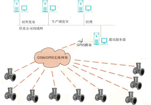 - GSM/GPRS遠程監控管理軟件系統: GSM/GPRS遠程監控管理軟件系統與帶遠傳功能的MGG/KL-DC型電池供電電磁流量計配套使用(見系統拓撲圖)本系統不僅可以實現流量計數據的接收、存儲,還可以實現對流量數據的統計與分析,使用戶方便及時的掌控區域內各流量測量點的用水情況