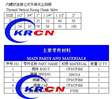 H12內(nèi)螺紋立式止回閥 主要參數(shù):