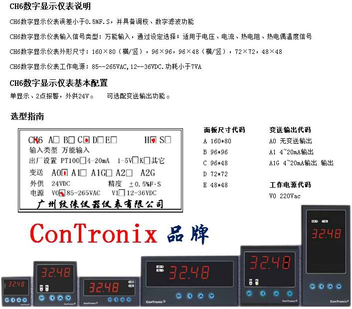 CH6數(shù)字顯示儀表誤差小于0.5%F.S,并具備調(diào)校、數(shù)字濾波功能