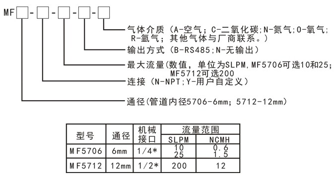 MF5706管徑:6mm; 流量:0-10L/min、0-25L/min;