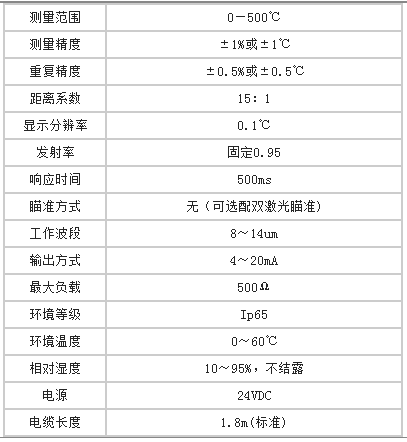 HE-155C紅外線溫度傳感器紅外測溫儀由光學系統、光電探測器、信號放大器及信號處理、顯示輸出等部分組成。光學系統匯集其視場內的目標紅外輻射能量,視場的大小由測溫儀的光學零件以及位置決定。紅外能量聚焦在光電探測儀上并轉變為相應的電信號。該信號經過放大器和信號處理電路按照儀器內部的算法和目標發射率校正后轉變為被測目標的溫度值。除此之外,還應考慮目標和測溫儀所在的環境條件,如溫度、氣氛、污染和干擾等因素對性能指標的影響及修正方法。 一切溫度高于零度的物體都在不停地向周圍空間發出紅外輻射能量。物體的紅外輻射能量的大小及其按波長的分布——與它的表面溫度有著十分密切的關系。因此,通過對物體自身輻射的紅外能量的測量,便能準確地測定它的表面溫度,這就是紅外輻射測溫所依據的客觀基礎。