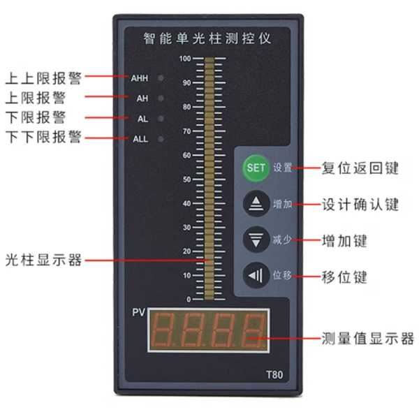 測量精度 ?數字:±0.5%FS±1字 ?光柱:±1%FS