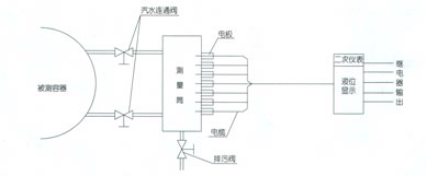 電接點(diǎn)水位計(jì)根據(jù)水與汽電阻率不同而設(shè)計(jì)。測(cè)量筒的電極在水中對(duì)筒體的阻抗小。在汽中對(duì)筒體的阻抗大。