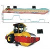 隨著振動壓路機(jī)壓實(shí)工作的進(jìn)行,土的密實(shí)度和彈性模量不斷增加,土與壓實(shí)輪之間的相互作用力也不斷增大,所以壓實(shí)輪的加速度幅值也在不斷增大,從而可以通過檢測加速度幅值變化間接測出路基的壓實(shí)狀況通過振動輪的動態(tài)響應(yīng)來檢測基礎(chǔ)壓實(shí)度情況,能更好的反映其下臥層狀況及承載力。加速傳感器安裝在鋼輪上,連續(xù)傳送經(jīng)過處理的信號并以數(shù)值(CMV值)形式至現(xiàn)在操作面板上的ICCC檢測儀。與傳統(tǒng)檢測的壓實(shí)度相比,壓實(shí)度聯(lián)系監(jiān)測儀的誤差控制在2%以為,并通過經(jīng)驗數(shù)據(jù)及現(xiàn)場標(biāo)定進(jìn)行修正,采用ICCC檢測儀后,駕駛員從顯示器上隨時查看壓實(shí)情況,振動頻率、行駛速度,能夠?qū)崿F(xiàn)質(zhì)量的實(shí)時控制,并能保存數(shù)據(jù)以備其他數(shù)據(jù)處理使用。