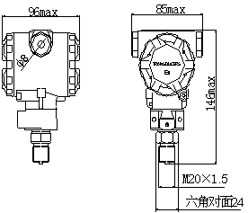 2、安裝時(shí),用扳手夾住M20×1.5的外六角部分,切不可將力作用于壓力變送器外殼。