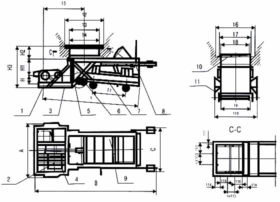 往復式給料機|往復式給煤機【煤礦專用】敞開式往復式給料機是利用曲柄連桿機構拖動下傾5°的底板在輥上做直線往復運動,從而把煤或其它磨琢性小,粘性不大的松散粒狀,粉狀物料從給料設備中均勻地卸到受料設備中。 K型往復式給料機主要特點: 1.工作可靠、壽命長。 2.重量輕,體積小,維護保養方便。 3.結構簡單,運行可靠,調節安裝方便。 4.封閉式框架結構,大大提高了機架的剛度。 5.裝有限矩型液力偶合器,能滿載啟動,過載保護。 6.zui大給料量可達1200噸/小時(煤),是目前zui大的往復式給料機。 7.采用了的平面二次包絡環面騾桿減速器設計,承載能力大,傳動效率高。 8.側襯板、斜襯板與底板之間留縫可調,能比較準確地控制留縫大小,大大減少了漏料。 9.驅動裝置對稱布置,并采用雙推桿 ,使整機愛力均衡,傳動平穩,消除了底板往復時的扭擺現象。 10底板有立向筋板,并用三道通長托輥支承,保證了底板本身剛度,消除了現有往復式給料機底板工作中彎曲變形的弊病。 11.襯板由小塊耐磨鋼板拼成,這樣不僅更換時輕便容易,而且可以根據實際磨損情況,有針對性地更換磨損了的襯板塊,從而使材料合理利用 ,降低維修費用。 敞開式往復式給料機工作原理: 敞開式往復式給料機是由機架、底板(給料槽)傳動平臺、漏斗閘門、托輥等組成。其傳動原理:當電動機開動后,經彈性聯軸器、減速器、曲柄連軒機構拖動傾斜的底板在插輥上作直線往復運動,將煤均勻地卸到運輸機械或其它篩選設備上。該機設有帶漏斗、帶調節閥門和不帶漏斗、不帶調節閥門兩種形式。 敞開式往復式給料機安裝示意圖: