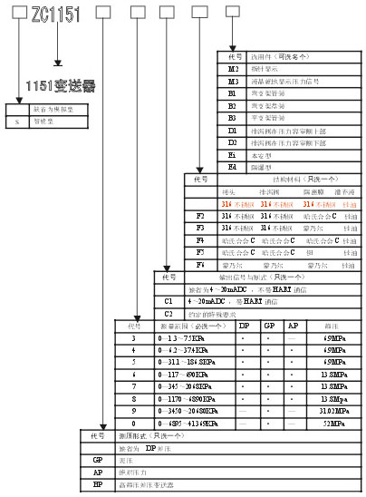 ZC1151型差壓/壓力變送器品種齊全,用戶可按不同需要任意選用,包括