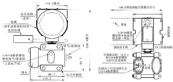 特 點:可配指針式和數字式現場示器;選型代號及各部件名稱、
