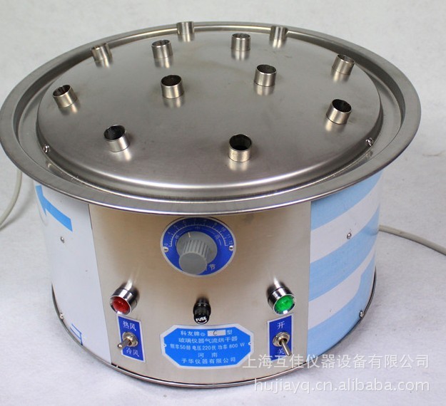 玻璃儀器氣流烘干器是使用玻璃儀器的各類實驗室、化驗室干燥玻璃儀器的適用設備。填補了空白。它具有快速、節能、無水漬、使用方便、維修簡單等優點。該烘干器分B、C型兩種型號。B型為改進,有調溫自動控制裝置(可調溫40-120℃),C型為全不銹鋼調溫型。