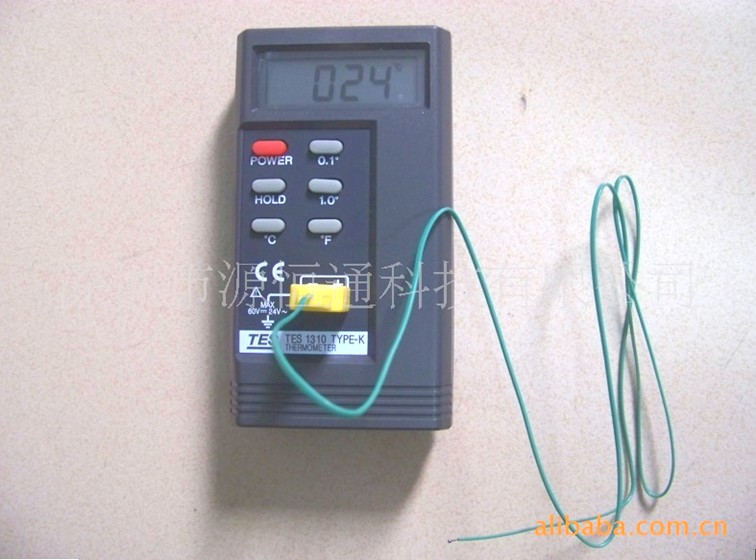 下圖片為TES-1310溫度計與標配的熱電偶探頭TP-K1實拍組合圖片,組合使用,可用來測量空氣中的溫度!