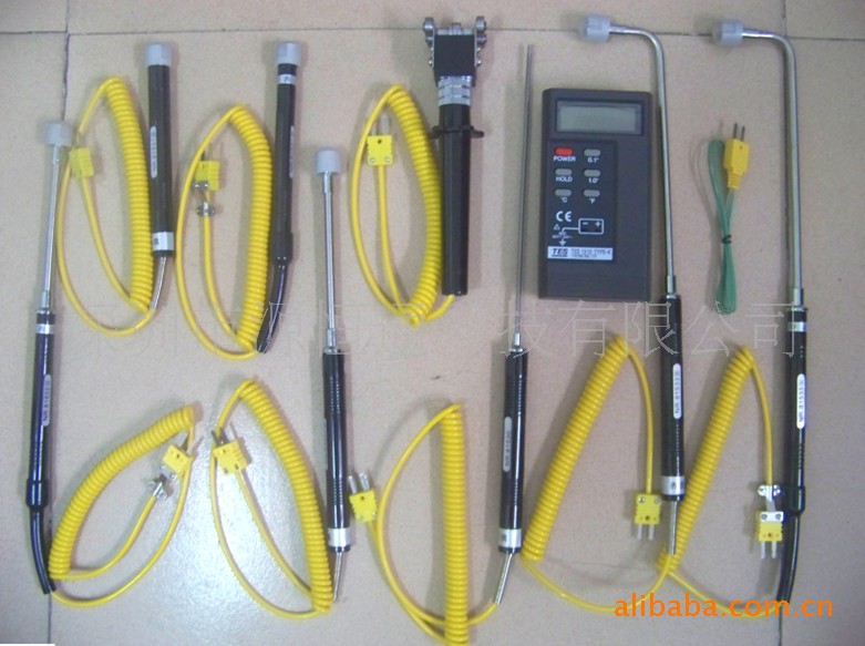 1、 下圖片為TES-1310溫度表與各款探頭實拍組合圖片,組合使用,可用來測量空氣、液體、固體、滑動等各類產品!