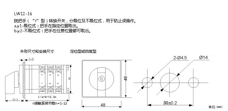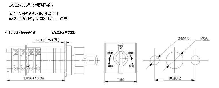 ![]() ![]() ![]() ![]() ![]() 注(1):派生代號一無代號為基本型,定位操作;“D”定位—自復操作;“Z”自復操作;“L”拉出旋轉操作;“S”帶鑰匙鎖操作;“Y”簡易鎖操作;“N”帶紅綠燈操作。