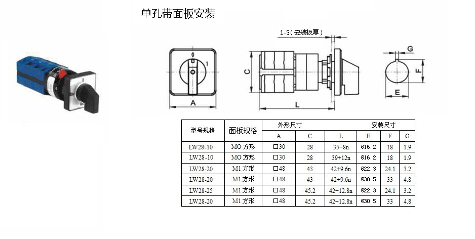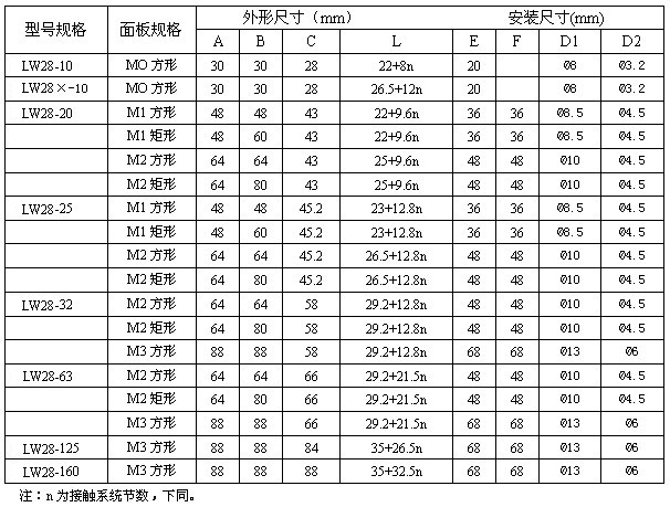 (1)定位型轉換開關有1~12節(63A及以上的開關僅有8節);