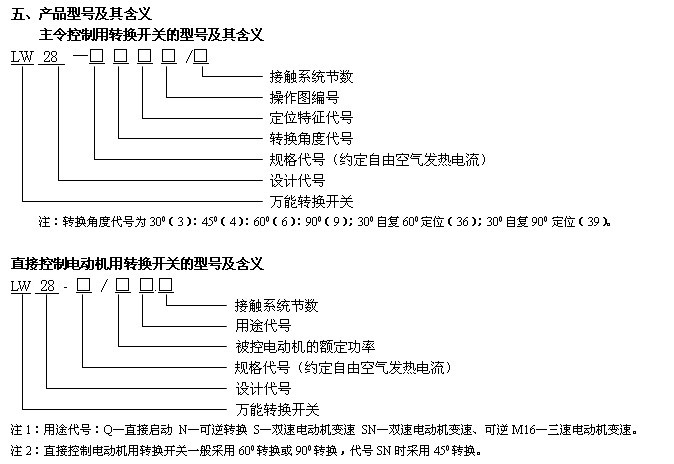 (3)直接控制電動機用轉換開關主要有1~6節。