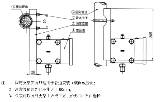 表連接:M20×1.5 G1/2” NPT1/2, NPT1/4 內螺紋(不配三閥組時)另外還 可以做成長尾法蘭連接、長尾螺紋連接、 隔膜長尾法蘭連接(主要用于粘稠介質或 特殊材料膜片)。