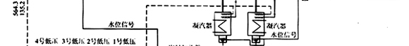 純凝工況時正常補水進冷凝器,高壓除氧器水位由汽封加熱器出口調節閥V1控制;冷凝器熱井水位由其進水調節閥V2控制。