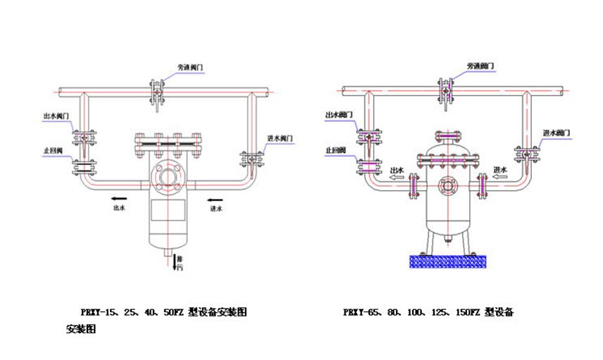3.設(shè)備安裝形式應(yīng)為旁通式安裝,以滿足在不停機(jī)狀態(tài)下加裝歸麗晶藥劑的需要。