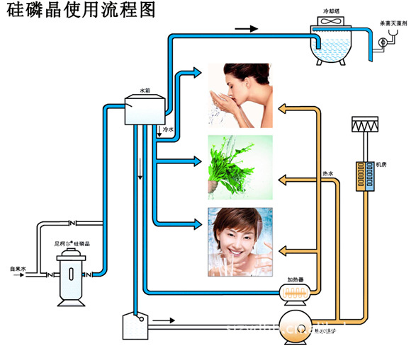 2、使用方法:生活飲用水系統(tǒng)管網(wǎng)另加加藥罐,讓飲用水流經(jīng)加藥罐后進(jìn)入過(guò)濾系統(tǒng)后再進(jìn)入管網(wǎng)系統(tǒng)即可;在工業(yè)循環(huán)冷卻水系統(tǒng)補(bǔ)水池投放硅磷晶,讓補(bǔ)充水全部流經(jīng)硅磷晶后進(jìn)入循環(huán)冷卻水系統(tǒng)即可。