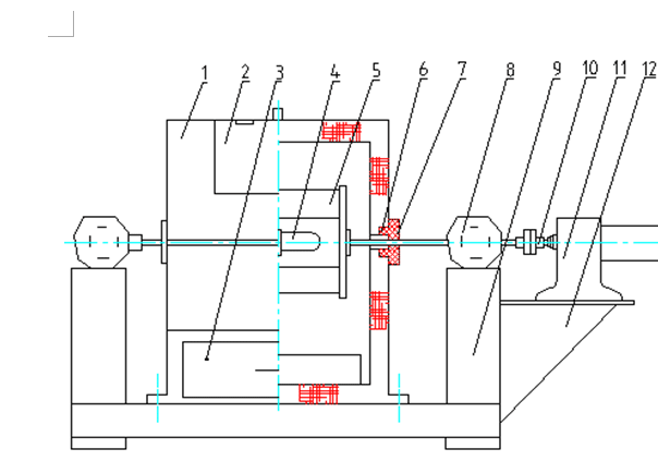 2. 磨機:磨機由筒體(5)、磨門蓋(4)、軸承及軸承(8)、聯軸器(10)和齒輪減速機(11)等組成,是研磨物料的主體部分,在卸料時將磨蓋換上柵孔卸料板,滿足卸料的要求。