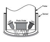 溶解氧分析儀測量探頭前端的傳感器罩上覆蓋有一層熒光物質,LED 光源發出的藍光照射到熒光物質上,熒光物質被激發,并發出紅光;一個光電池檢測熒光物質從發射紅光到回到基態所需要的時間。這個時間只和藍光的發射時間以及氧氣的多少有關,溶解氧分析儀探頭另有一個LED 光源,在藍光發射的同時發射紅光,做為藍光發射時間的參考。傳感器周圍的氧氣越多,熒光物質發射紅光的時間就越短。因此,計算出溶解氧的濃度。