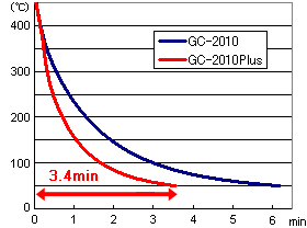 增加了的冷卻風扇,并優化了空氣循環,使得柱溫箱冷卻速度大幅度提高(從450°C降至50°C僅需要3.4分鐘)。風扇噪聲也降至zui低。當使用反吹功能時,分析時間將進一步縮短。