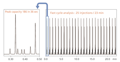 Nexera系統不僅實現了超快速分析,同時還兼具高分離分析,在130MPa高耐壓系統中使用具有分離能力的色譜柱。該色譜柱更長,填料粒徑更小,有助于超快速和高分離分析同時實現。