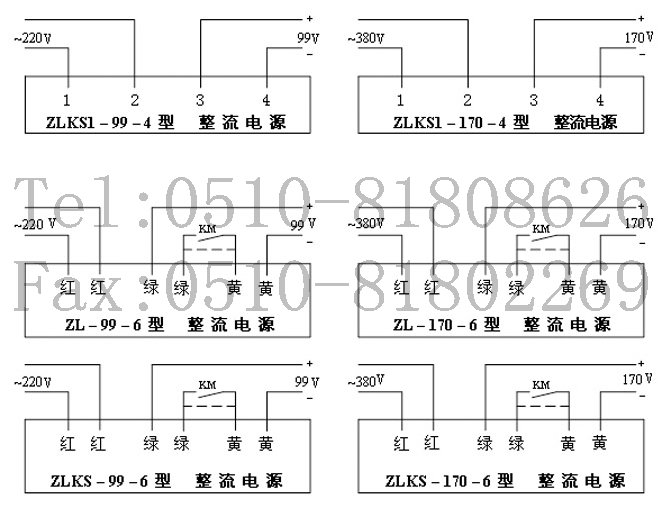 ZLKS1–170–6為快速釋放型,六端接線柱式,輸出直流電壓為170V整流電源。