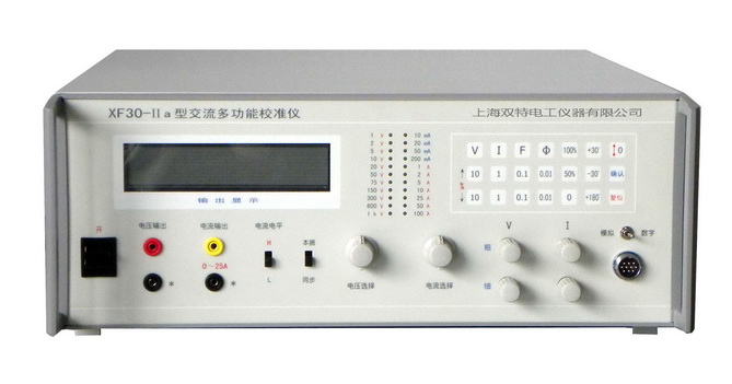 XF30-Ⅱa型交流多功能校準儀(改進型)輸出范圍:電流0-100A 電壓0-1000V 適用于檢定、校驗各種0.5級交流電流、電壓、頻率、相位、功率、功率因數表。亦可作為高穩定度測試電源使用,配合高等級標準表,校對0.2級以上交流電流、電壓、功率表。配用標準測試線圈(選購件),可以校驗1級以下交流鉗形電流表(0~1000A)。