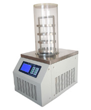 主要技術指標: 冷阱盤管溫度:<-55℃,-80℃(可選) 真空度:<10Pa 凍干面積:0.07-0.1m2 捕水能力:3Kg/24h 盤裝物料:0.7~1.2升 外型尺寸:565×420×(360+340)(mm) 物料盤規格: ф180mm共3層(瓶裝物料可手動壓蓋裝置) |
