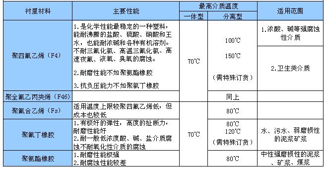 三、電磁流量計電和襯里材料