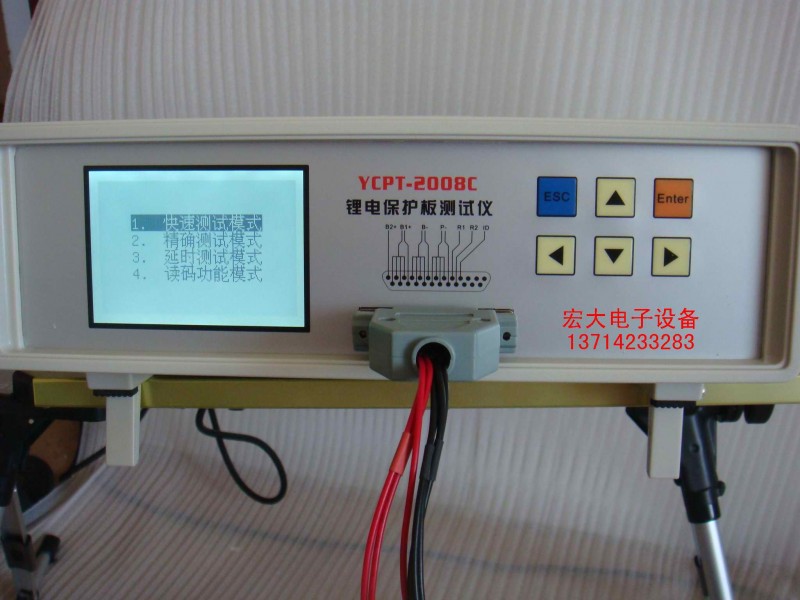 深圳市宏大電子設(shè)備有限公司所生產(chǎn)的YCPT-2008C鋰電池保護(hù)板測試儀可以快速測量1~2節(jié)鋰電池保護(hù)板,為了同時(shí)兼顧快速批量測試和測試,特設(shè)兩種測試模式 1,快速測試,1秒鐘內(nèi)判斷一塊保護(hù)板好壞(根據(jù)保護(hù)延遲時(shí)間不同會(huì)有不同),啟動(dòng)快速測試無需按鍵,接上保護(hù)板自動(dòng)啟動(dòng)測試。