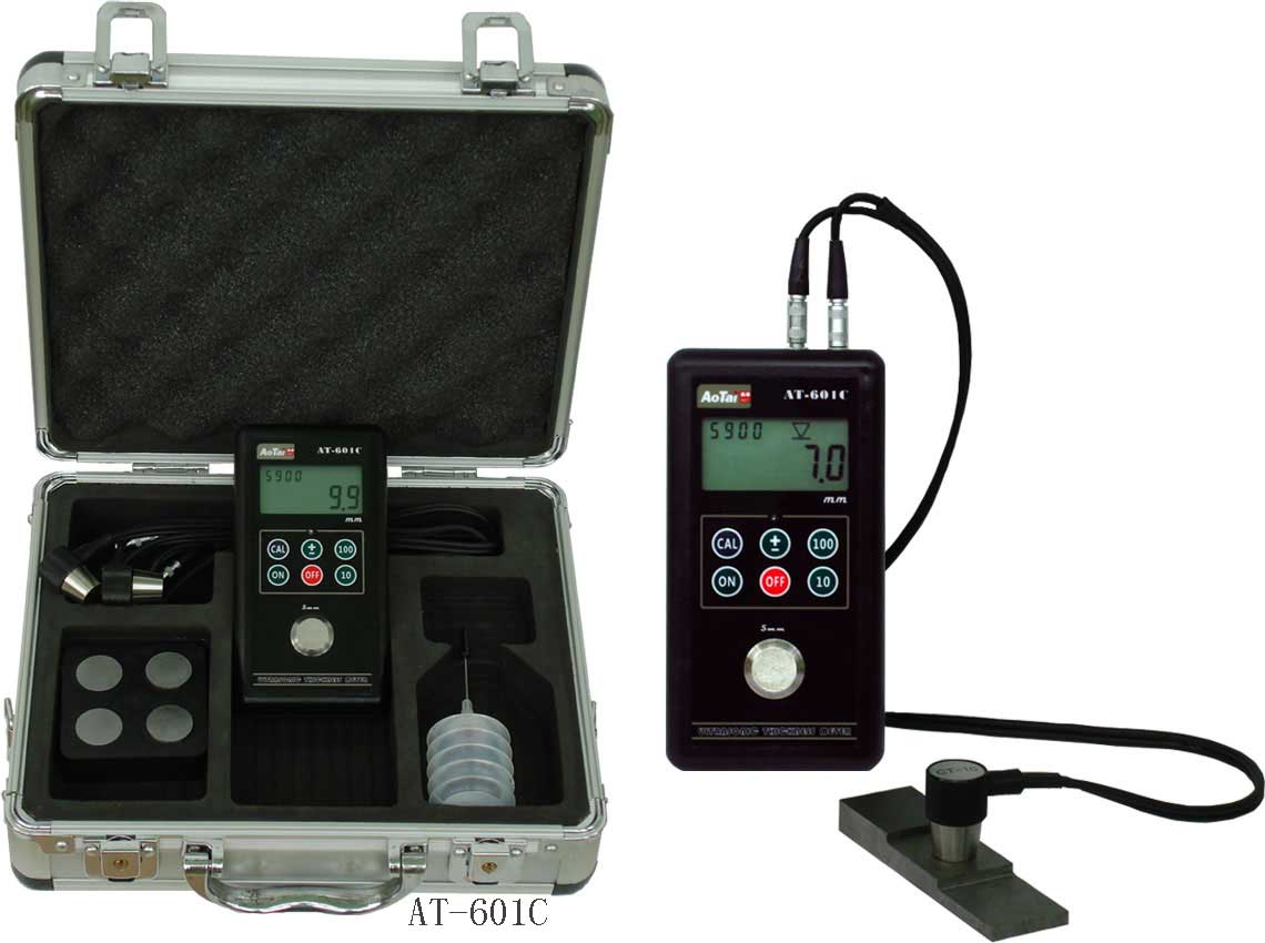 AT-601C超聲波測厚儀是采用新的高性能、低功耗微處理器技術(shù),基于超聲波測量原理,可以測量金屬及其它多種材料的厚度,并可以對材料的聲速進行測量。可以對生產(chǎn)設備中各種管道和壓力容器進行厚度測量,監(jiān)測它們在使用過程中受腐蝕后的減薄程度,也可以對各種板材和各種加工零件作精確測量。