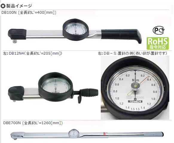 檢查用扭力扳手的基本型.不受握持位置的影響. (D B R :帶加長手柄, D B R : 機械加力型) 表盤式清晰直觀,適用于測定作業. (-S-:帶記憶指針)