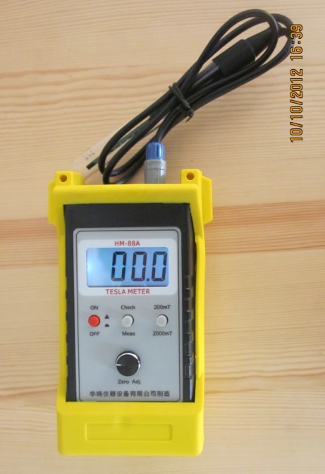 HM88A型手持式數字特斯拉計,用于測量永磁材料表面磁場、直流電機、揚聲器、磁選機、永磁除鐵器的工作磁場以及泄漏磁場,零部件機加工后的退磁剩磁場。該儀器可以隨身攜帶,量程范圍寬,操作方便,液晶顯示清晰。